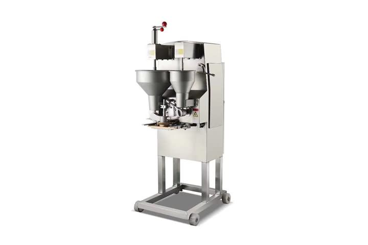 仿手工(变频挖式)成型机是一款完全模拟丸子手工用匙子成型的设备,完全解决传统切刀式成型机那种不可避免的高密度和外表皮粗糙问题。做出的丸子具有密度小、圆度好、外表皮光滑的特点,特别在做贡丸和牛肉丸这些有肉筋的丸子时是目前市面上接近手工口感的丸子成型机。