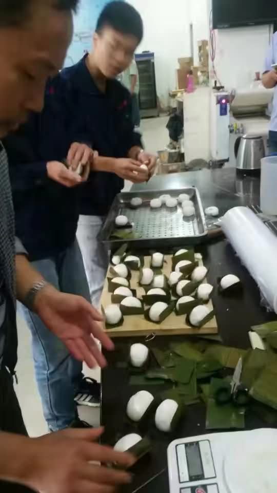 买汤圆机做叶儿粑咯!那么哪款汤圆机型号比较适合呢?汤圆机做出来的成品客户还需要人工放置叶儿上,所以带自动摆盘的汤圆机可以不用考虑,直接选择VFD-4000A汤圆机自动包馅搓圆成型后,员工在旁接成品再包装下就可以了。