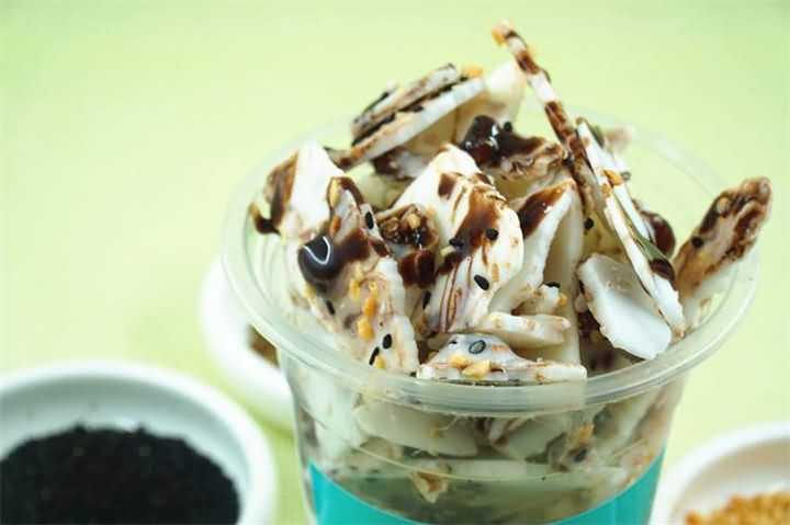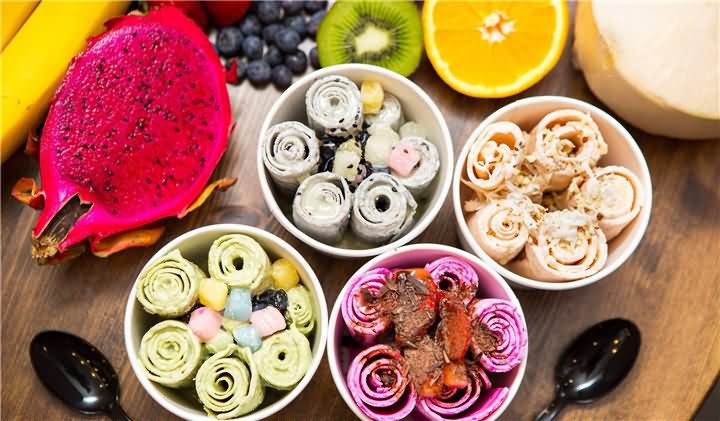 热闹的街市,一群放学的孩子围着一个炒冰机,排队买炒酸奶,各种味道的奶片再撒上一点彩色糖果,这个色彩与味蕾的诱惑谁能抵挡得了