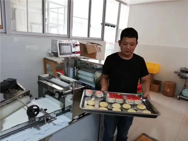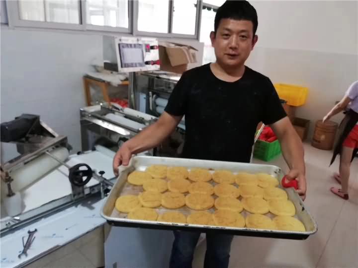 陕西汉中张总食品厂酥饼机调试完毕恭祝张总生意兴隆!财源广进!同时非常感谢张总的盛情款待!你还在招大量员工进厂只为做酥饼吗?酥饼机早买早享受,不信抽点时间实地考察酥饼机,你会发现只需一台酥饼机就能顶8-12个员工的工作效率,做出来的酥饼成品外观更好看,外形大小更一致!