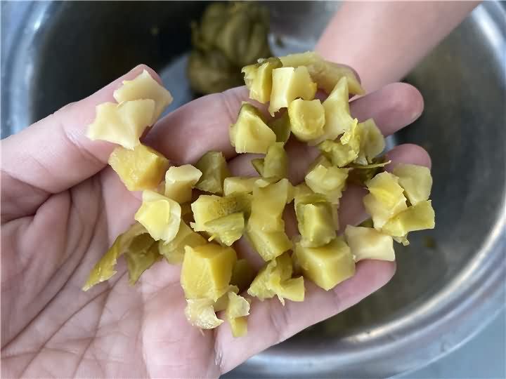 既想要切片又想要切丁,那么只有选择多功能切菜机,该切菜机专业切片、切丝、切段、切丁等功能,仅需更换刀具就可以完成各种果蔬切菜需求,客户想要切榨菜丁,但是也需要切其它的球根类萝卜片、土豆丝等需求,于是便给他安排上680A切菜机试切榨菜丁的效果,当场验收切菜机切榨菜丁成品非常满意,直接定购切菜机设备!
