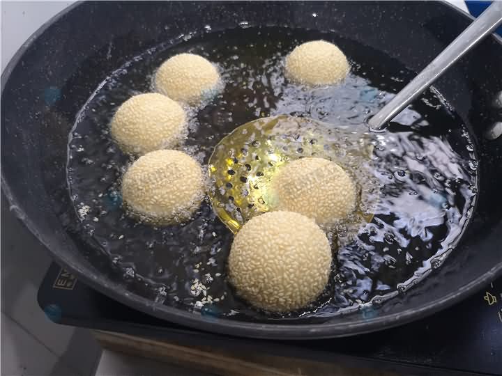 多功能包馅机做麻球咯!就是一开始做出来的团子形状,如要裹芝麻则需要人工手工裹,或者可以配一台自动裹粉机器,专门裹粉、裹芝麻、红米、紫米等等,先来看看包馅机做的麻球效果:
