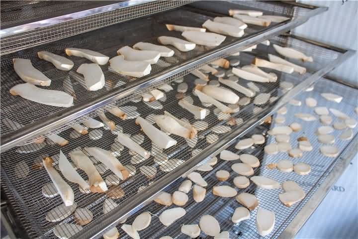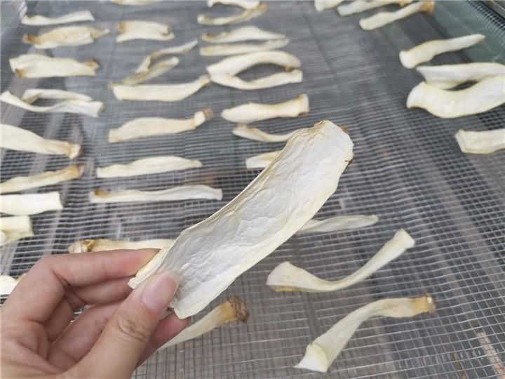 蘑菇类的一般含水量比较大,烘干过程过中要注意排湿,前期温度不能过高,否则容易烘熟,使烘出来的成品颜色变黑。但也排湿过量不然色泽偏白,失去香味,一般排湿时间不超过6小时为宜。