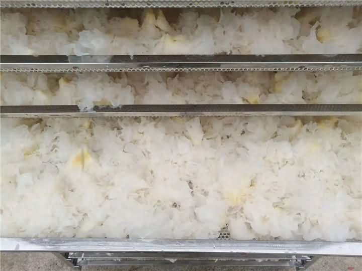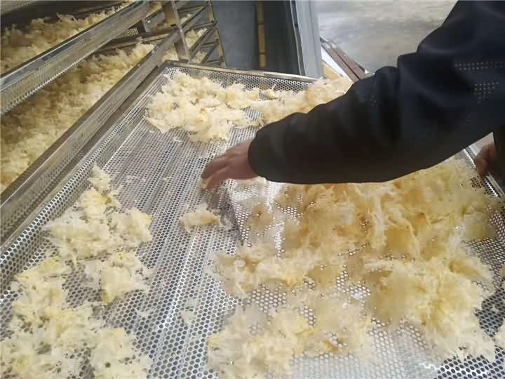 为什么要买烘干房?银耳加工食品厂负责人说道,以前都是看着天气来自然烘干的,随着天气的变化而变化,有时候连续半个多月都没有加工银耳,员工无事做还得照常付工资,对食品厂造成很大的损失,于是便想用烘干房一体机,这样就不用再被天气而束缚着。不曾想到,烘干房烘干的银耳效果远远超于自然烘干,真是庆幸找到了好的设备,也很后悔没有早一点接触!再此也祝客户银耳食品厂越来越火旺!!!