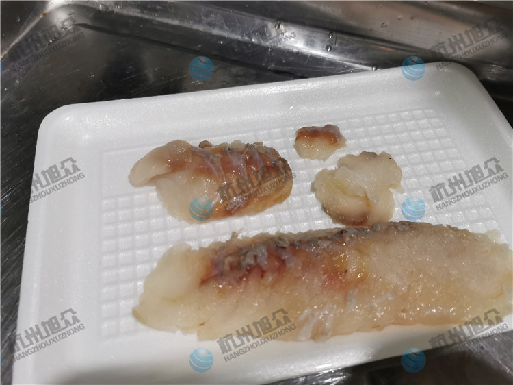 今日份分享,客户寄过来的安康鱼物料试机效果展示:设备—XZ-280A斜切鱼片机