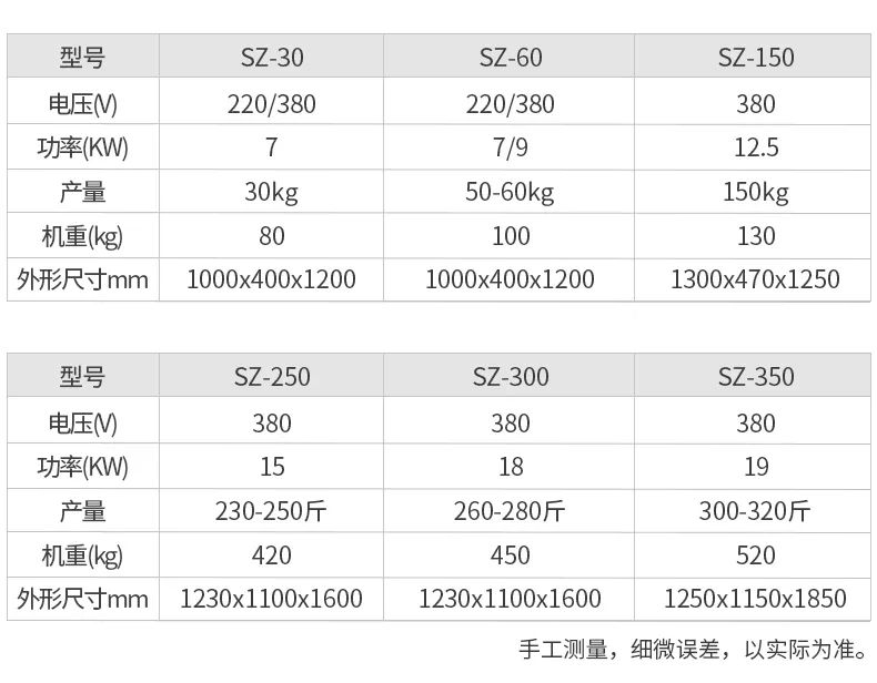 生产快,出品率高,型号多,投资规模可大可小,适用于个体、乡镇加工厂及城市食品加工。