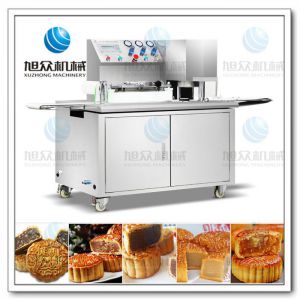 旭众牌SZ-65型月饼自动成型机是一款多功能的设备,其具备的功能有:月饼计数、数字清零、月饼位置定位、月饼花纹深度调节、外模对内模提前动作时间调节以及成型时输送带延时时间调节。