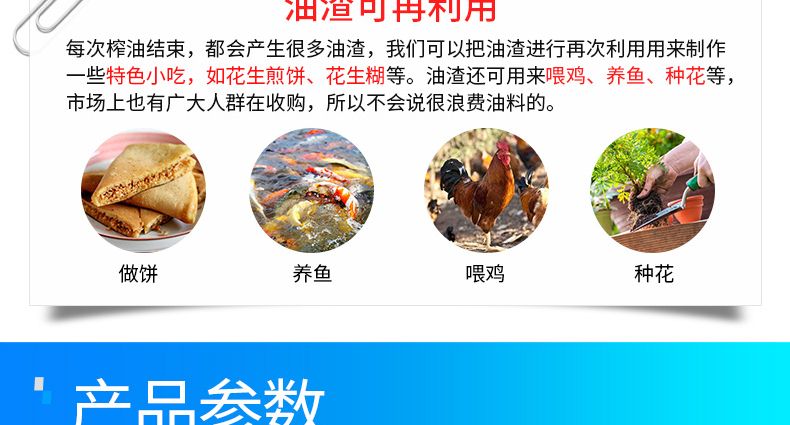 适合压榨油料 | 芝麻、菜籽、葵花籽、花生、大豆、等多种原料 |