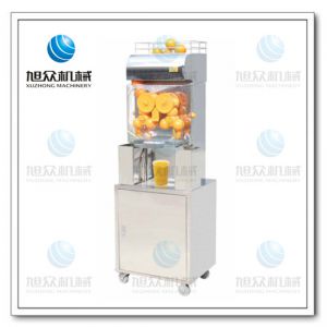 旭众牌自动榨橙汁机系纯天然绿色饮品的生产机器,该鲜橙榨汁机所榨出的橙汁是现榨的纯原汁,它的一大特点是:果汁中不含任何人为的防腐剂、稳定剂、色素、香 精、水等,与市场上现有的浓缩汁、罐装、瓶装、软包装 、粉装和颗粒状冲水式果汁有本质的不同。该鲜橙榨汁机采取挤压式,鲜橙经消毒、漂洗后,直接进入机器 ,自动剥皮、榨汁、过滤,现榨现饮,橙汁中无皮、无丝 、无籽、无渣,口感极佳。