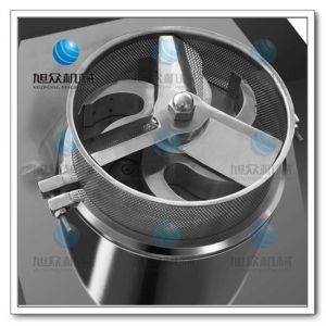 摇摆式颗粒机制得的颗粒一般粒径分布均匀,有利于湿粒均匀干燥。它的主要特点为旋转为旋转滚筒的转速可以调节,筛网装卸容易,还可适当调节其松紧。机械传动系统全部密封在机体内,并附有调节系统,提高了机件的寿命。但由于成粒过程是由滚筒直接压迫筛网而成粒的,物料对筛网的挤压力的摩擦力均较大。使用金属筛网时易产生金属污染处方,而尼龙筛网由于容易破损需经常更换,在使用时应加以注意。