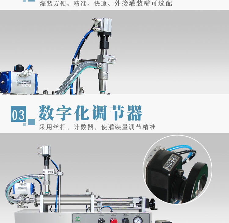 3、采用丝杆、计数器,使灌装量调节精准,并可以数字形式直观地体现;