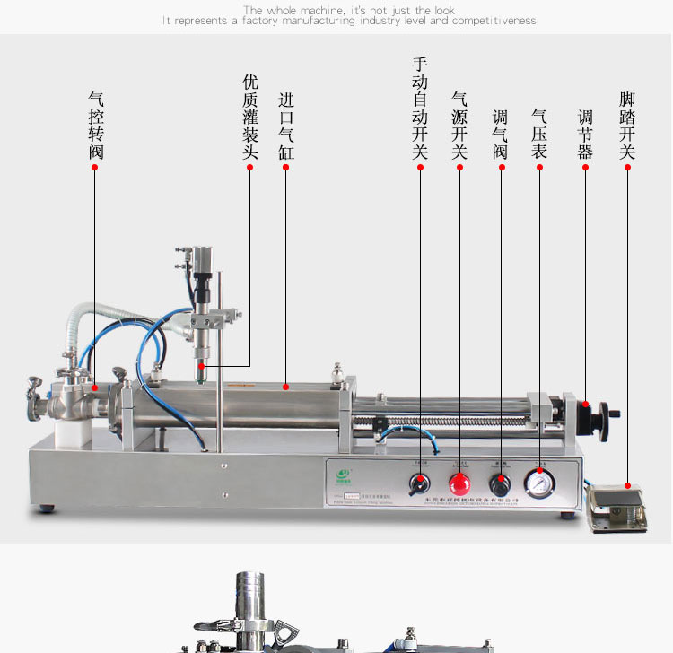 6、灌装头上面有带防拉丝、防滴漏装置,灌装嘴配有两个尺寸;