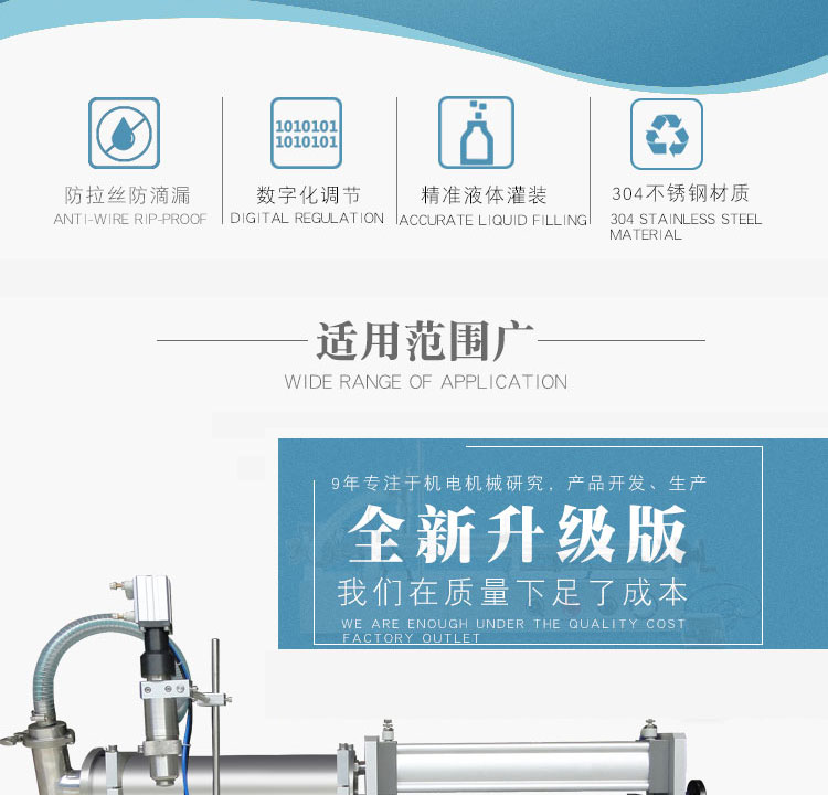 8、灌装速度快,每分钟可以来回灌装30次,以500ml的水为例,灌装精度是±1%