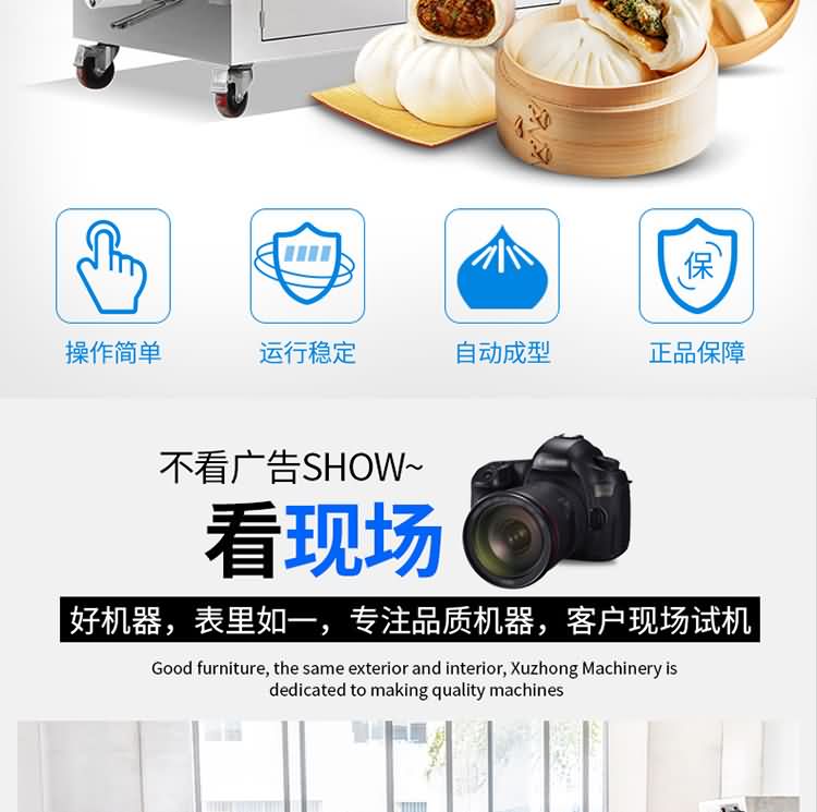 XZ-290IIA卷面式包子机,可生产肉包、菜包、小笼包、豆沙包、奶黄包、云南破酥包等多种包馅类产品。适用于宾馆、饭店、学校、机关企业食堂、馒头或包子加工厂、早餐工程店及速冻食品厂等单位。可满足不同客户群体。免费提供工艺技术。免费上门培训指导安装。