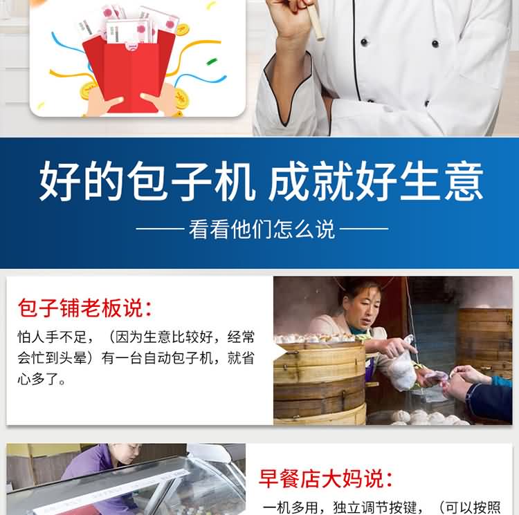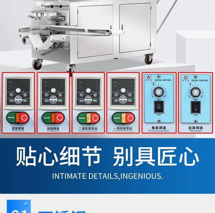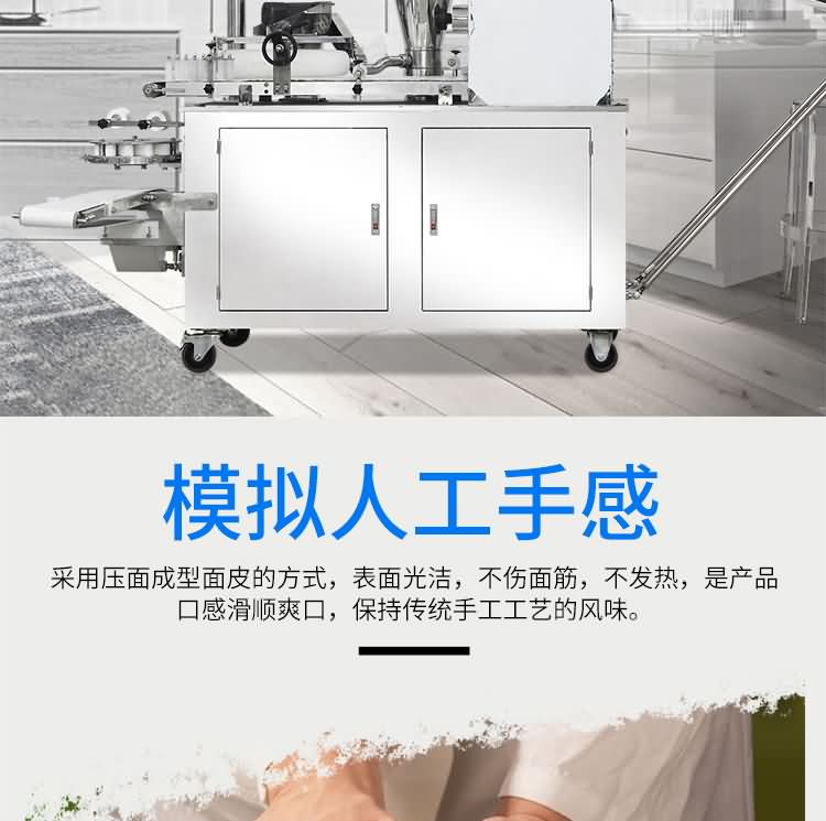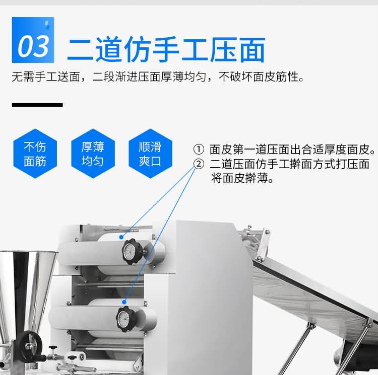 ◆压面、成型、出馅一体化,操作简单方便,生产效率高,占地面积小。