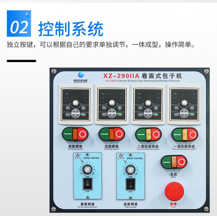 XZ-290IIA卷面式包子机是以压面方式成型面皮,卷面方式包馅,仿手工捏花的一款机型,它整合了原有的二道压面、成型机、出馅机为一体,可直接调整面皮的厚度、馅料的多少。