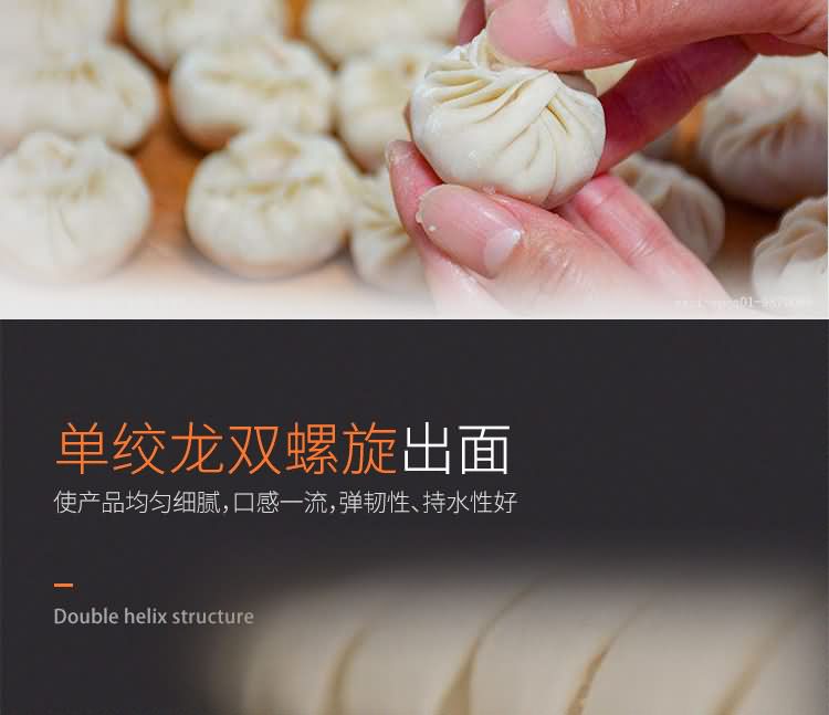 ♦采用单绞龙、双螺旋结构,充分保护面筋,使产品均匀细腻,口感佳,弹性好、持水性好,远超手工制品;