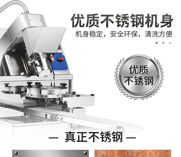 ◆出馅系统:立式料斗,立式馅搅龙结合偏心馅泵同步拨挤馅料方式。结构简单密闭性好。使注馅均匀流畅,实用于决大多数菜包,肉包,灌汤包,奶黄包,豆沙莲蓉包等馅料。并且馅管采用半卧式倾斜装配,防止了市面上立式出料包子机馅料容易成团下掉造成包子馅料不均匀或出现空包子的现象。
