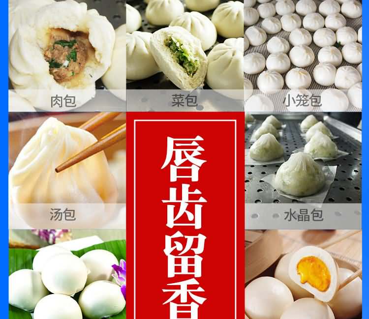 ◆制品多样化,可生产各种肉包、肉菜包、菜包、小笼包、汤包、水晶包、圆馒头、奶黄包、豆沙包、叉烧包、南瓜饼等几十种包馅制品。