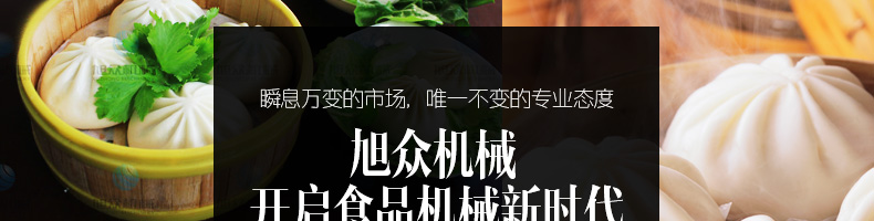 旭众牌XZ-290III型卷面式包子机是由本公司自主设计研发,精工打造的一款专业仿手工生产制作各种包馅类食品的高效实用型机械设备,是一款生产肉包、菜包、小笼包、豆沙包、奶黄包等多种包馅类产品的多功能实用新型食品机。