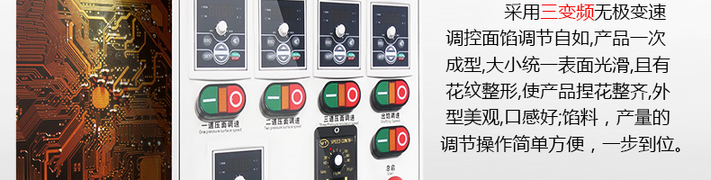 ♦三变频无极变速调控,生产速度、制品大小、内馅含量及生产产量皆可随意调控;