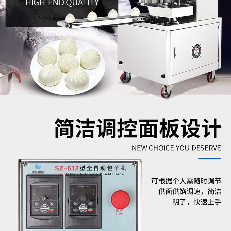 SZ-612全自动包子机,旭众小型SZ-612型全自动包子机是一款设计先进,结构简单,操作方便,生产性能稳定的设备。其体积小重量轻,外壳主要部件采用不锈钢制作,外观精美。
