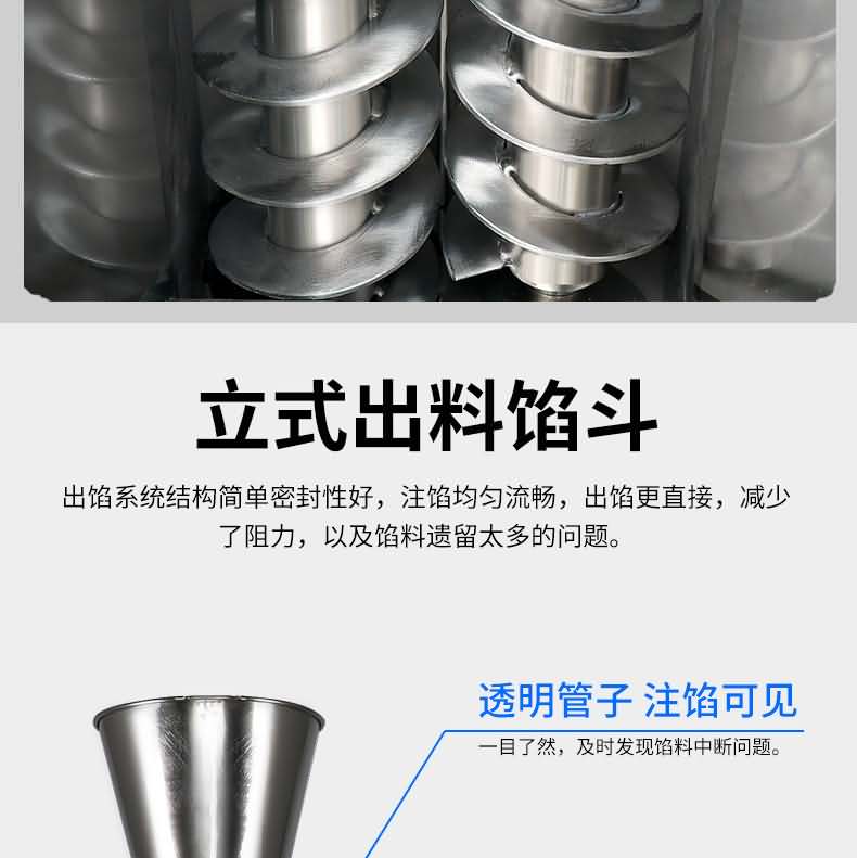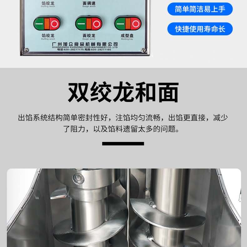 ◆送面、送馅均采用无极变速,大小及面馅比例均可调节;