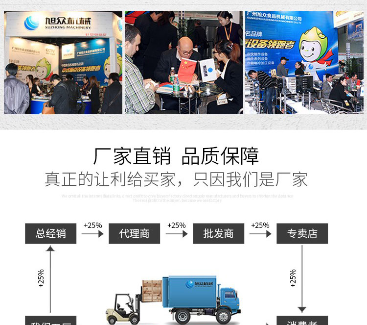 杭州旭众机械设备有限公司是一家集科研开发,生产设计,营销服务为一体的现代化生产企业。现代化生产车间,精湛制造技术,所产机械历经市场重重考验,不断赢得海内外客户的赞誉。
