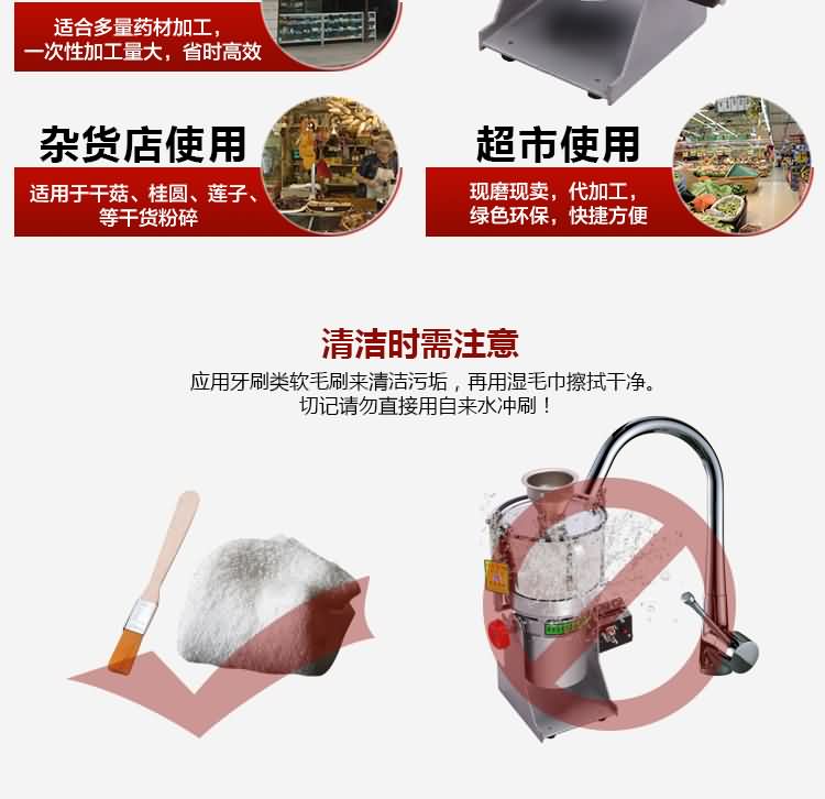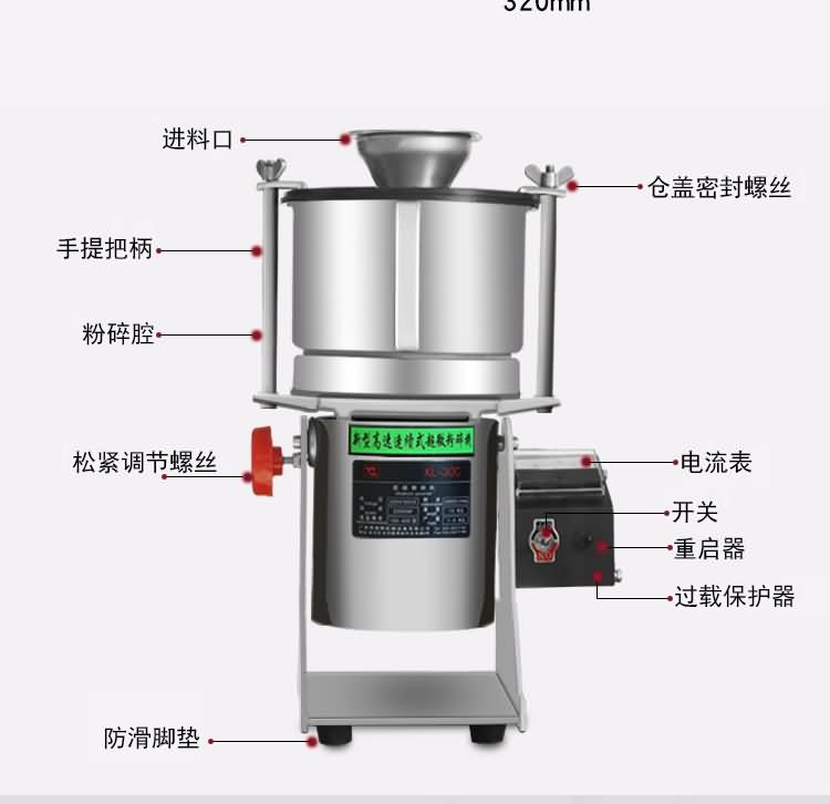 4、使用泛围广,矿物质,纤维质及稍具粘性之物质(烘干)均能粉碎到极细粒度,如甘草,珍珠,糖尿病配方,脐剂,皮肤敷剂等。