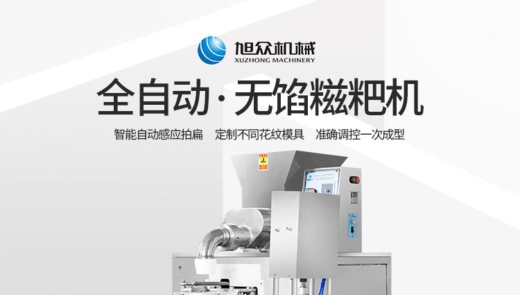 旭众牌XZ-5000A无馅糍粑机是一款生产香甜糍粑的设备;设备入料斗容量大,采用双绞龙送料、变频无级高速,产品大小、出皮厚度调节自如、使用方便,精确度高,出皮均匀、畅通。产品一次成型,所出产品外形大小统一,远比手工制作美观、便捷。