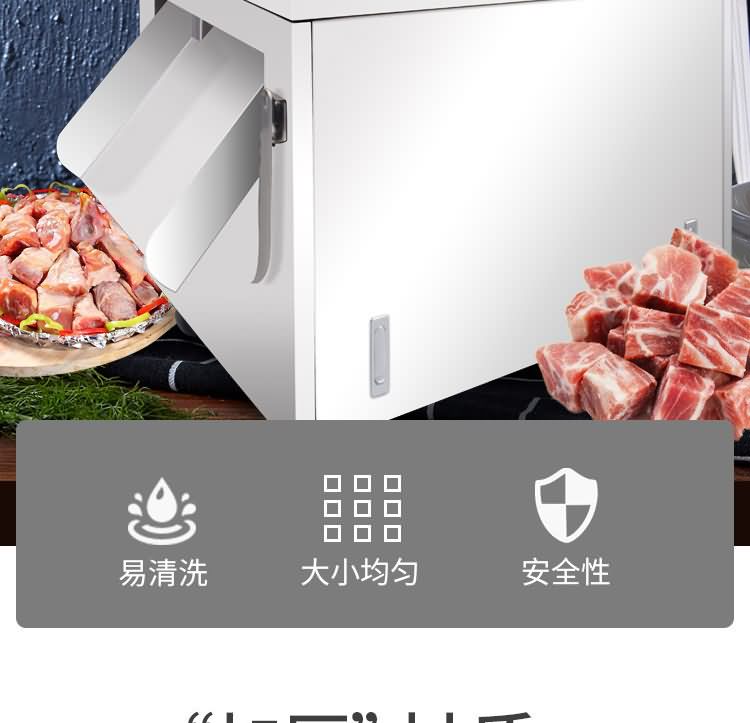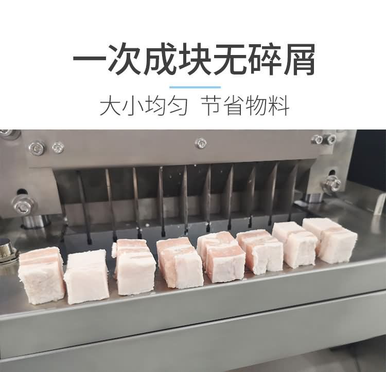 2、不产生碎屑,冷肉切块机,无浪费。全自动操作,减轻工人劳动强度;