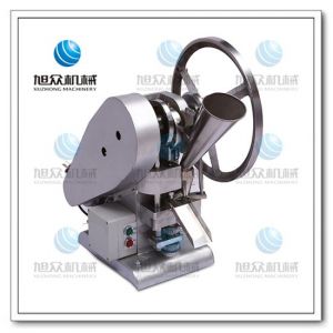 单冲压片机适合压制中药片剂、西药片剂、咀嚼片、钙片、口含片、螺旋藻片、奶片、糖果片、泡腾片、调樟脑丸(卫生球)、芳香片、味块、消毒片、催化剂、化肥片、农药片、纽扣电池、电子元件、冶金粉末陶瓷粒等。是一种小型台式电动(手动)连续压片的机器,机上装一付冲模,物料的充填深度,压片厚度均可调节。可根据客户要求提供各种形状的模具。单冲压片机能将粉粒状原料压制成片剂,可广泛适用于制药厂、化工厂、医院、科研单位、实验室试制和小批量生产。本机性能优良,适应性强,使用方便,易于维修,体积小,重量轻,无电时也可手摇片。本机只装一付冲模,物料的充填深度,压片厚度均可调节,能适应制药行业压制各种中、西药征剂的要求和其它行业压制各种类似产品的要求,深受各行业广大用户的欢迎。