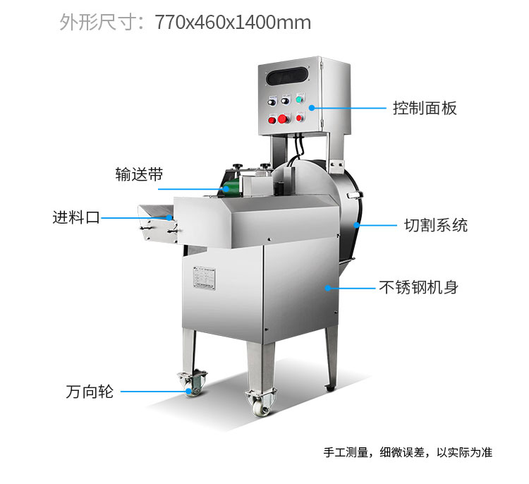 3、切菜效率高,节省人工投入,双变频调速控制,操作简单、方便、安全。