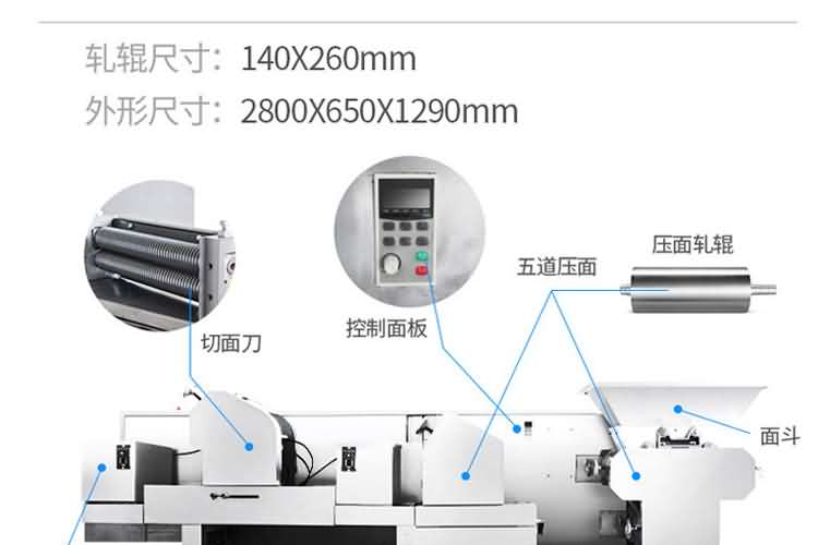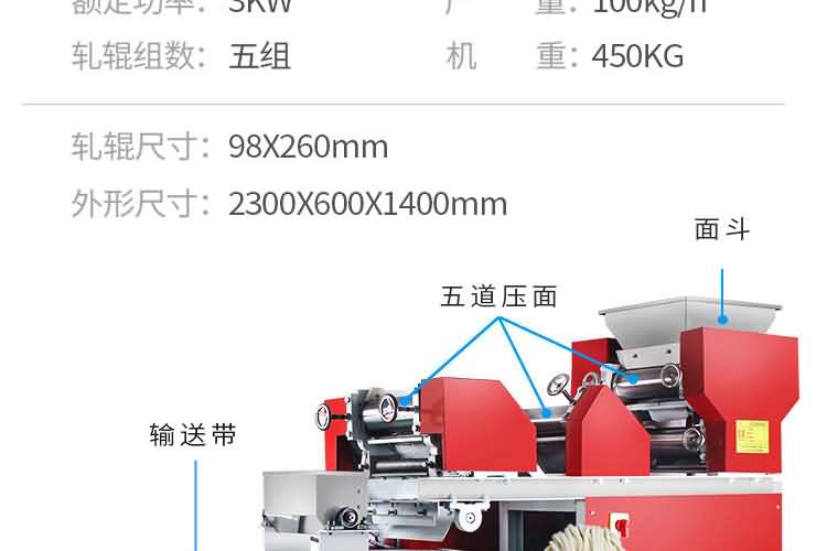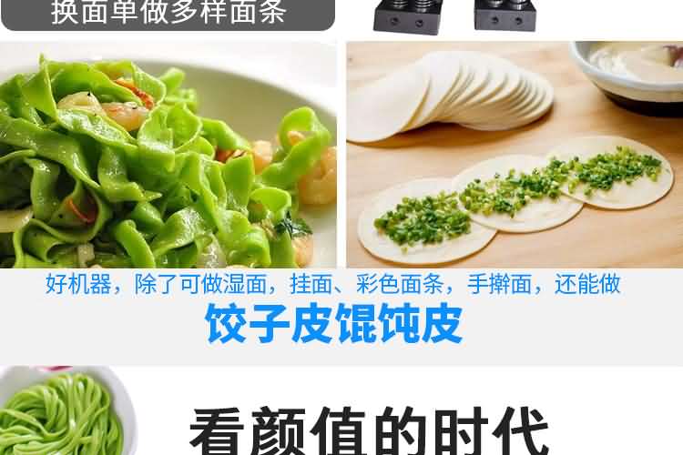 以上喷塑铁外壳面条机不带叠皮功能,电压都是380V,常规机型,可根据客户要求添加组数和宽度尺寸!
