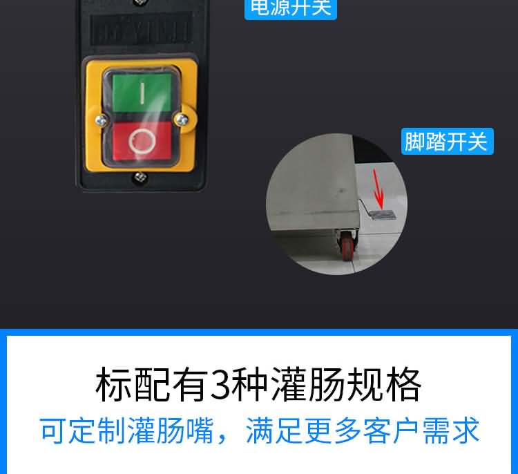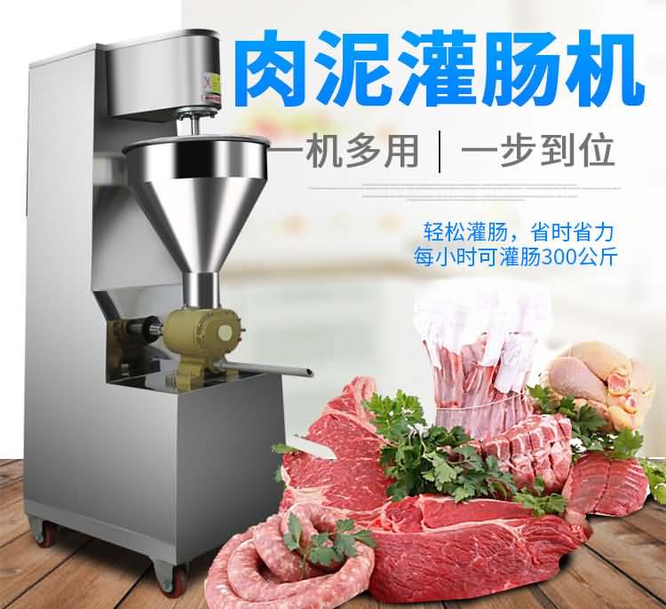 泵浦式灌肠机是加工制作香肠、火腿肠、亲亲肠、台湾热狗等浆状的机械,以及做火锅料的灌浆配套设备,本机外观选用不锈钢材料制造,外型美观、体积小、噪音低、用电省,生产效率高,操作方便。