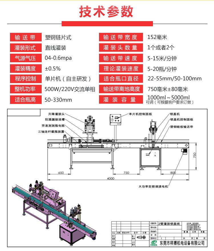 名称4米灌装输送线灌装旋盖一体机 电源 功率 产量 尺寸 重量 规格 其他