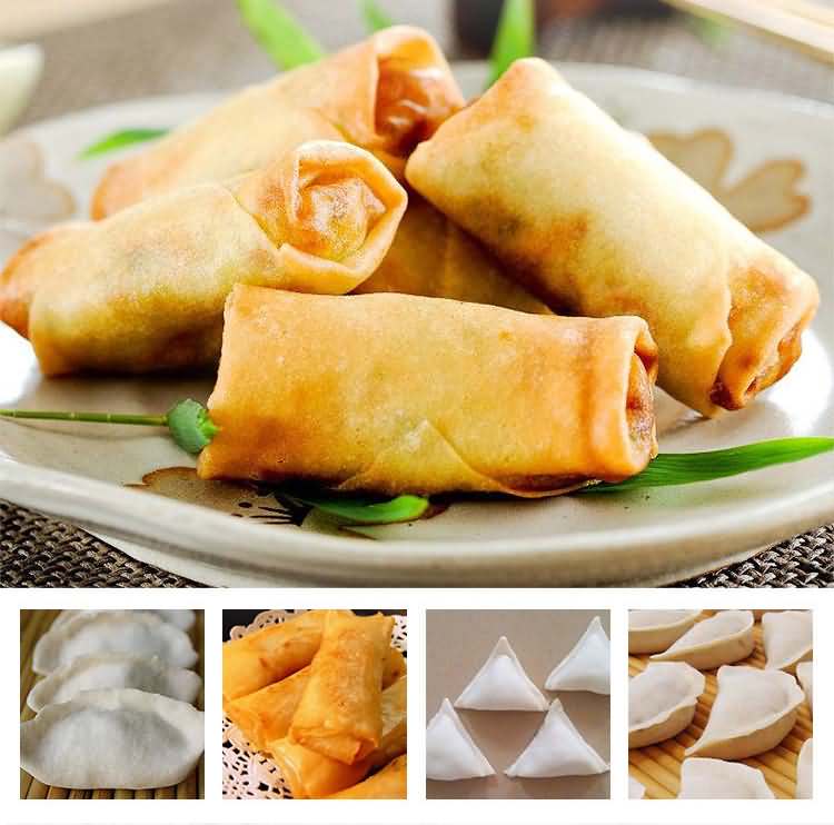 ♦一机多用:只要更换模具,就可以制造不同的食品,如春卷、馄饨等,面皮厚度与馅量可调整;