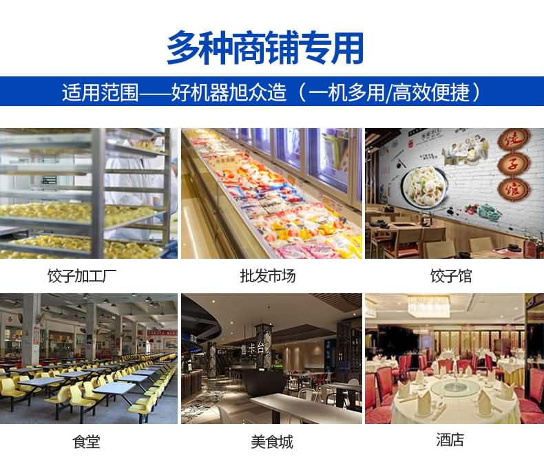 本系列设备适合食品速冻厂、饭店、厂矿学校食堂等制作包馅面制品单位使用。适合做:饺子、蔬菜饺子、锅贴、煎饺等。
