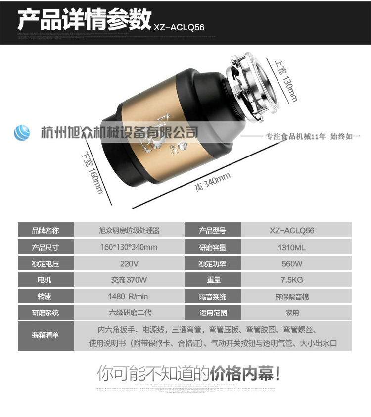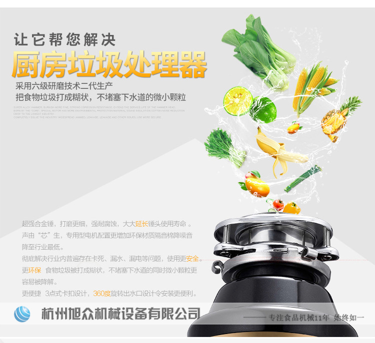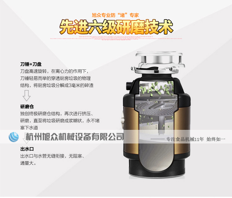 ACLQ56-厨房垃圾处理器,该机器是靠内部结构、零件组合达到处理垃圾的效果,通过碾、压、挤、磨等系统的处理,在十几秒内安全将食物垃圾处理成小于3毫米的颗粒,随着水流排入下水道,使用十分安全。