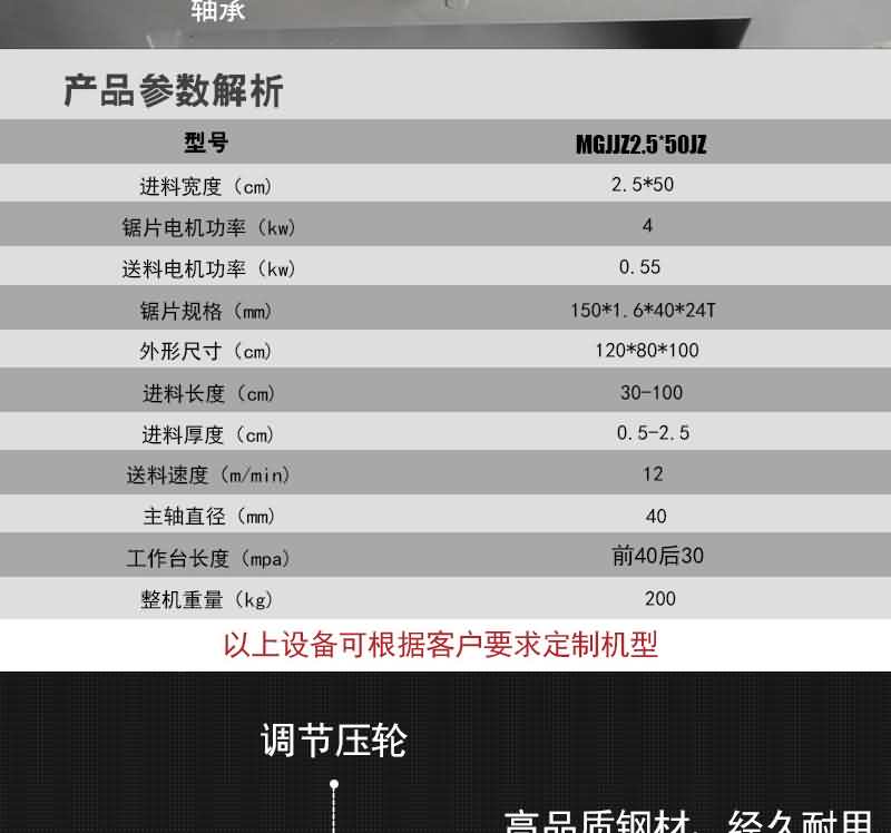 精装溜边锯(多片锯)用于对自然宽木板进行修边、规格分片等。规格多、送料速度快、修切精度高。结构简单,性能稳定,隔套加大,锯片无晃动,可多人操作,送料速度更快。产品具有送料顺畅、加工精细、减损锯片、高工效,低耗材、环保、锯切精度高,表面光滑平整,无需再次压刨加工,减少木材浪费,安全性强等优点,加工过程板材不走弯,可过20cm以上的短料,适用于干料和湿料加工,是各种板材加工成型的理想设备。更多关于溜边锯详情咨询客服热线17767057793,0571-29900819