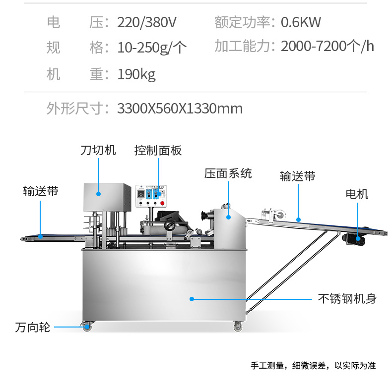 ♦自动化程度高,定量准确,制品大小统一,馒头面带厚度、成型、切段大小均可随意调控;