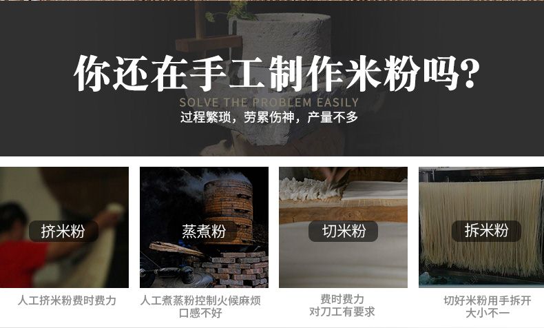 ◆ 米粉机成型米粉久煮不断、口感爽滑、营养丰富。