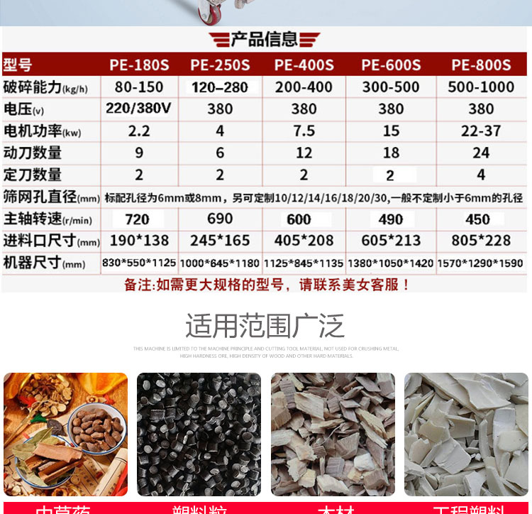 型号 | PE-180S | PE-250S | PE-400S | PE-600S | PE-800S |