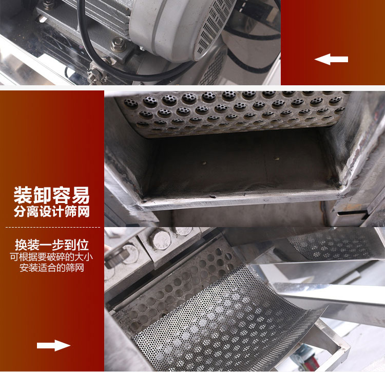 筛网孔径:标配孔径为6mm或8mm,另可定制10/12/14/16/18/20/30mm,一般不定制小于6mm的孔径