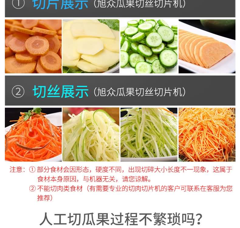 旭众SZ-200/300/400切丝切片机用于薯类硬菜切条、具有切面质量好、切菜效率高、操作方便及能耗低等特点。该切丝切片机设计造型别致,结构合理,紧凑,采用不锈钢外壳,美观大方、耐用。采用扇形刀盘和半月型调节盘结构。不用更换刀片可进行切丝、切片。切片厚度可根据需要在一定范围内随意调节,体积小,重量轻、耗电低、操作方便、适用于广大用户。
