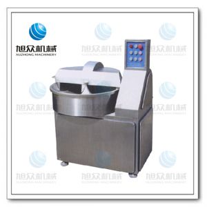旭众牌斩拌机系列是肉制品生产制工艺中的一个关健设备.它不仅能够将肉块、碎肉,脂肪原料精细地切碎,还能同时将其它原料如水、冰屑、调料、附加品同肉末一起搅拌成均匀的乳状物。根据不同的要求选择适当的转速相组合六组刀具相配合,可以缩短运行时间,减少物料发展量,可以保持馅料的天然色泽。