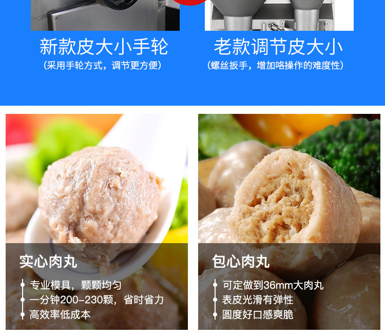 XZ-609包心肉丸机为包馅肉制品成丸设备,能生产出各种大小尺寸的包馅鱼丸、撒尿牛丸、猪肉丸、牛肉丸、及包馅贡丸等,并可做不包馅的各类丸子。该设备具有速度快、卫生方便、易拆洗等特点,可代替几十个人手工生产,可为厂家节省人员的投入、提高生产速度。