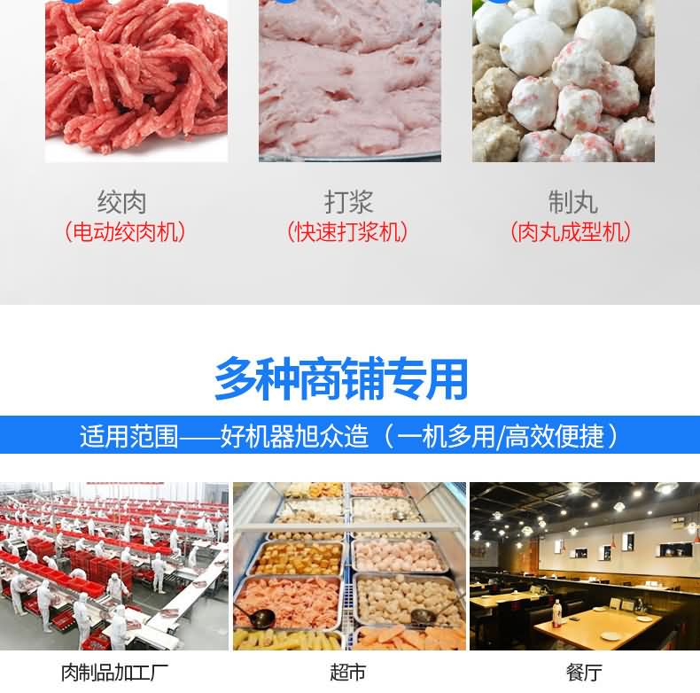 XZ-605肉丸成型机为肉制品成丸设备,能生产出大小尺寸七个规格的肉丸及花生贡丸,并可按要求尺寸订做8-30mm的规格,具有速度快、卫生方便、易拆洗等特点,可代替八个人手工生产,可为厂家节省人员的投入、提高生产速度。