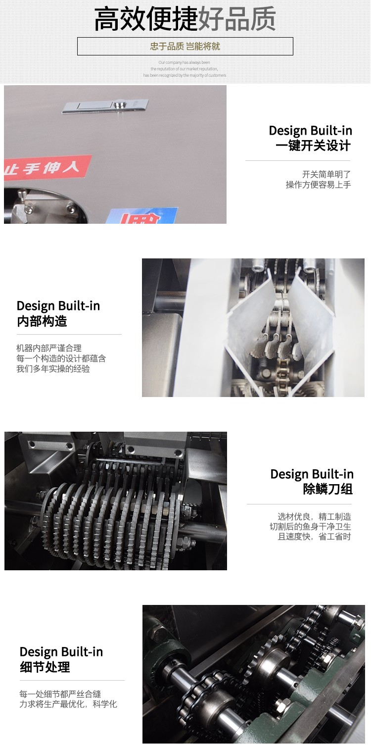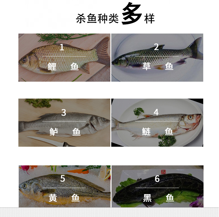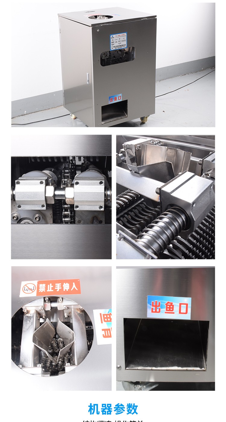 本设备为鱼类食品加工厂,大型超市,机关食堂,海鲜市场,农贸市场,烤鱼店,酸菜鱼店,火锅店等餐饮酒店带来高工作效率。