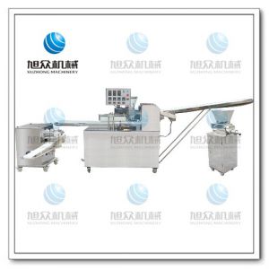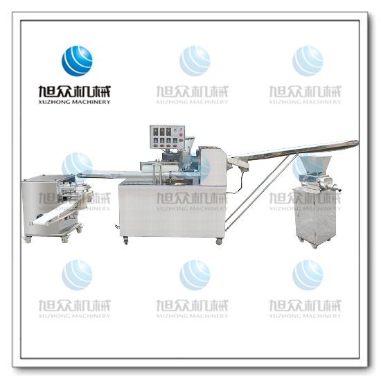 旭众牌SZ-09A多功能单段酥饼机是经面轮将面皮压成合适厚度,由自动出馅机将馅料充填至面皮上,经卷面轮将面皮卷成圆柱状,后以成型刀具切割成球状,或是长条状饼胚,再经过打饼成形,整个成形过程不会破坏面皮筋性。